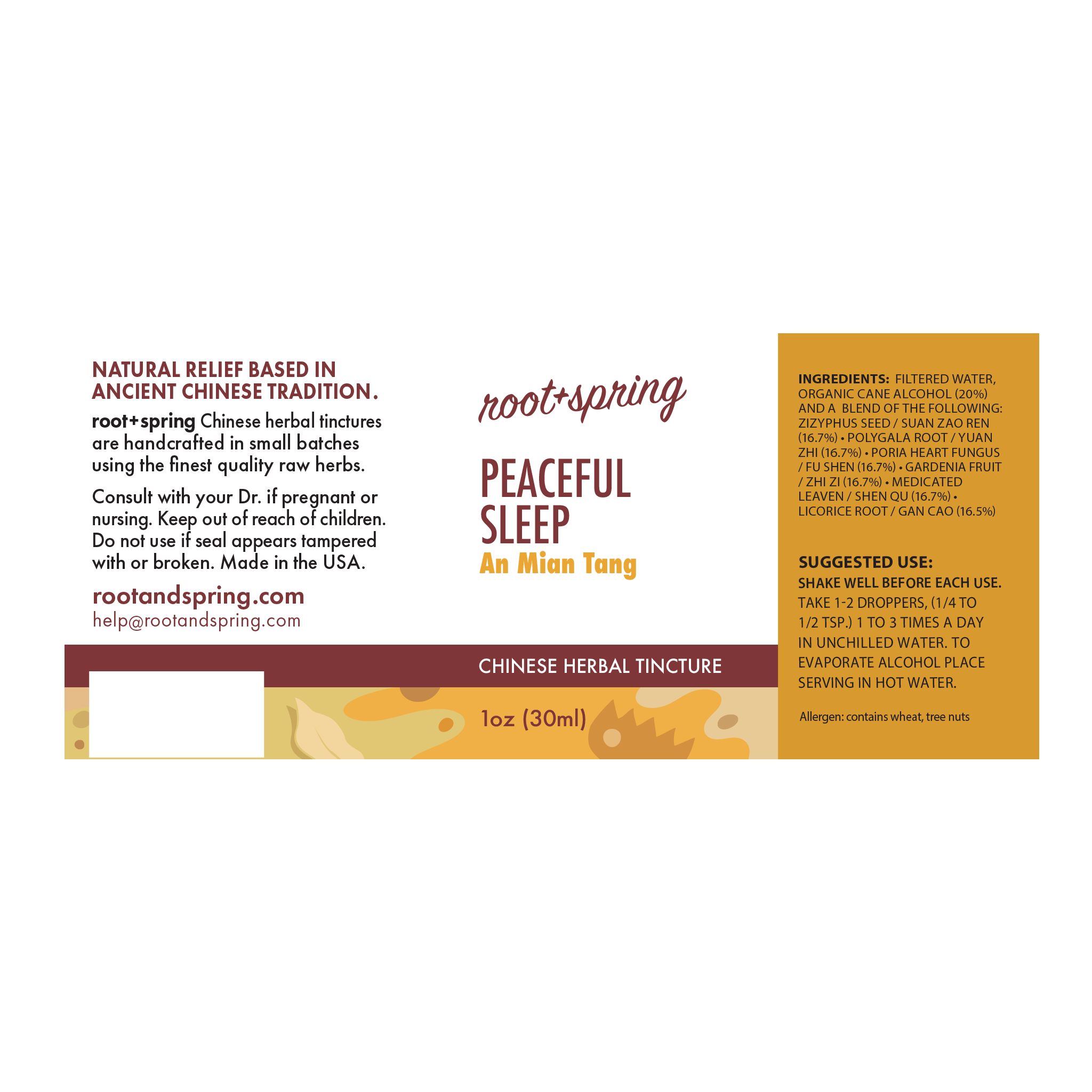An Mian Tang (Peaceful Sleep) is a liquid tincture that clears heat and calms the Spirit to promote restful sleep.