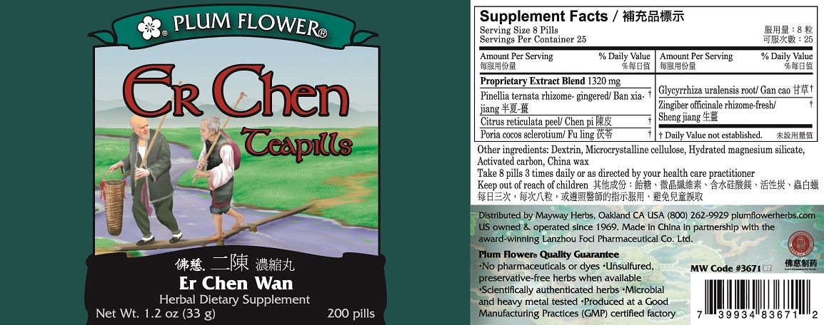 Plum Flower – Er Chen Wan clears excess phlegm and mucus from the head, chest, and abdominal regions of the body. Amount: 200 teapills per bottle.