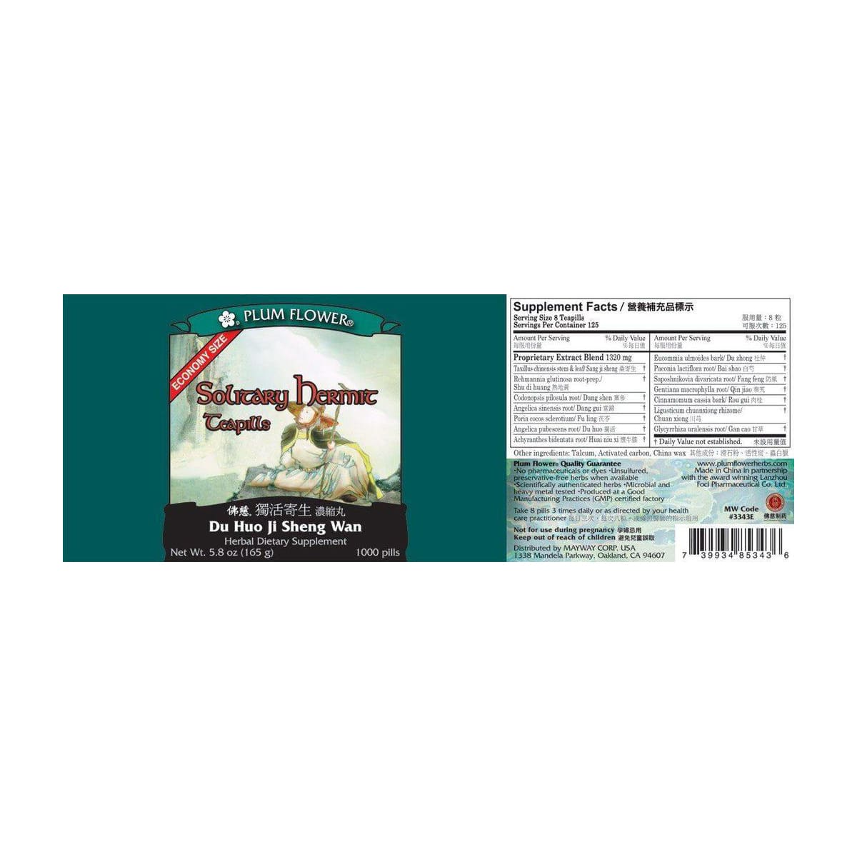 Plum Flower – Solitary Hermit Teapills, or Du Huo Ji Sheng Wan is a classical Chinese Herbal Medicine formula (c. 650 AD) that best addresses arthritic-type conditions in which weakness in the lower back and/or weak, aching knees is the chief complaint.