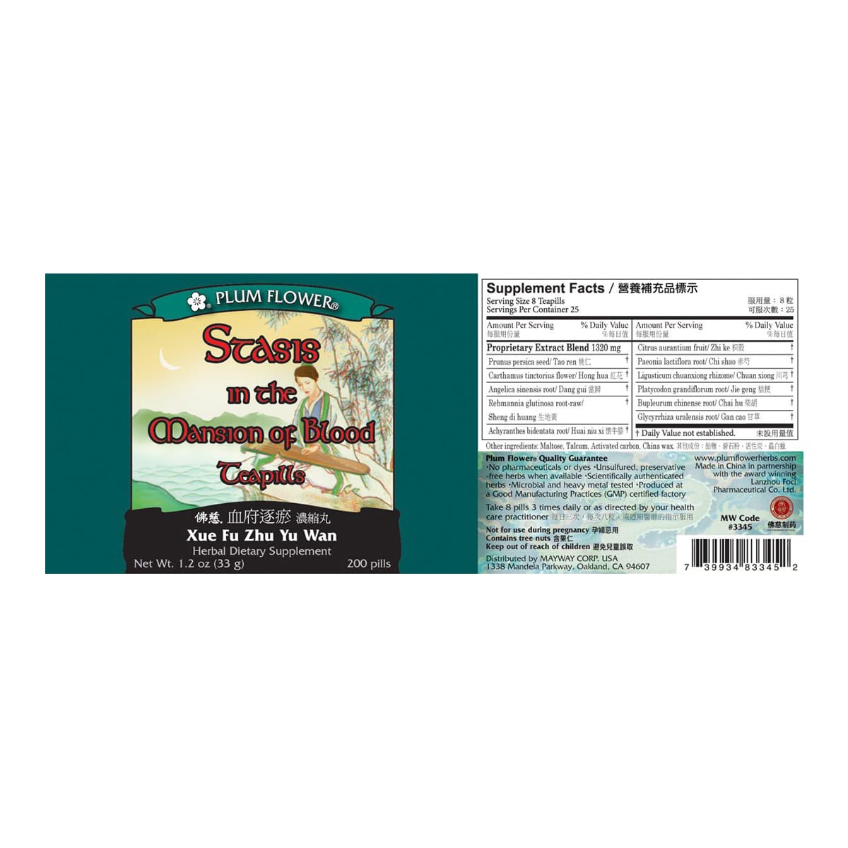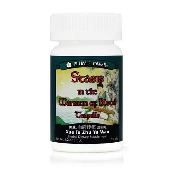 Plum Flower – Stasis in the Mansion of the Blood Teapills invigorates blood circulation and breaks blood stasis to addresses PMS/menustrual pain, pain from traumatic injury, and internal masses and swellings. Amount: 200 Teapills per bottle.