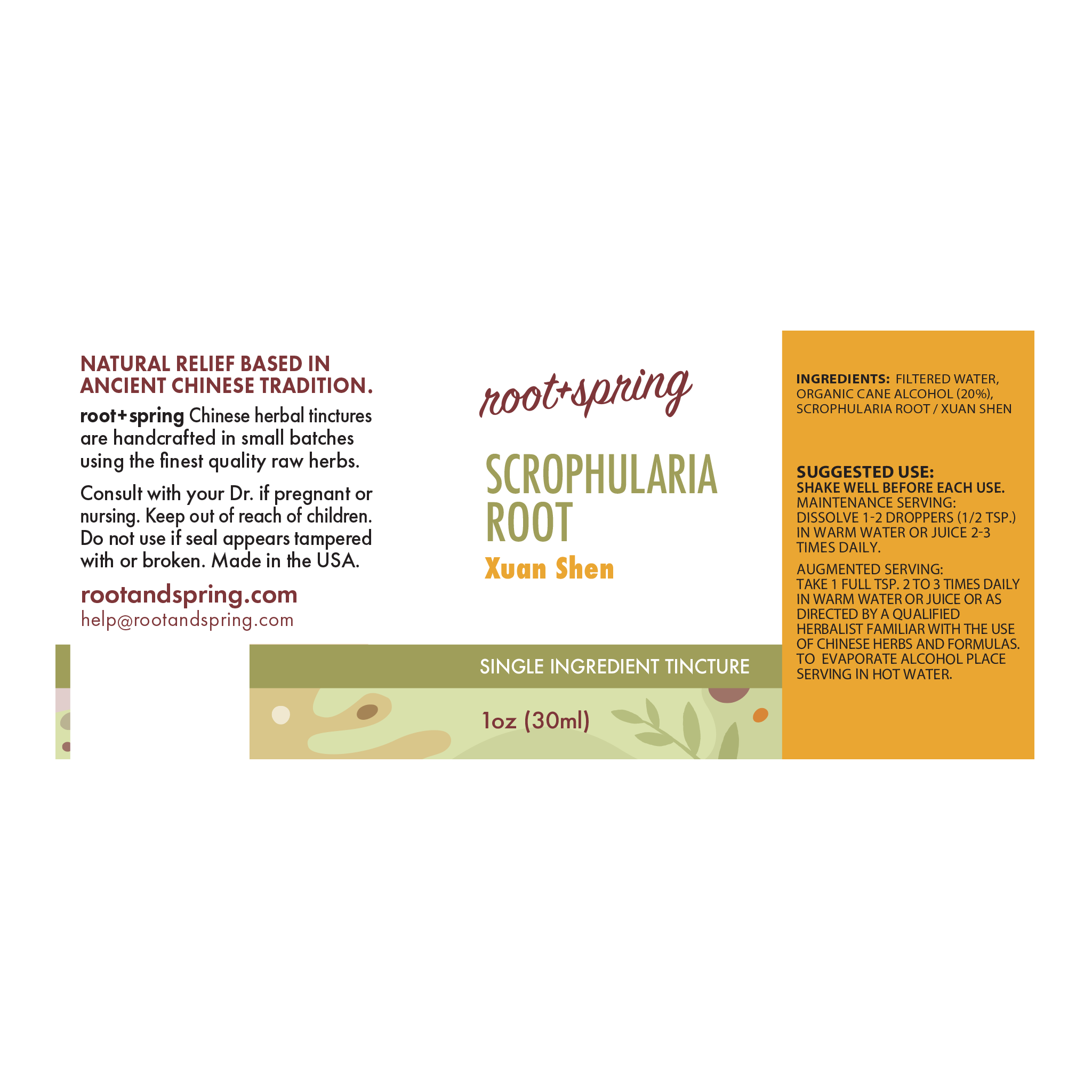 Xuan Shen (more commonly known as scrophularia root) is used in cold & flu formulas to specifically address sore throat. Amount: 1oz (~10 days supply).